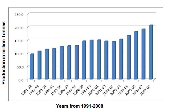 The statistics of the horticultural crops from 1991-2008 is given below in terms of area and production. These records are collected from Indian Horticulture Database of National Horticulture Board